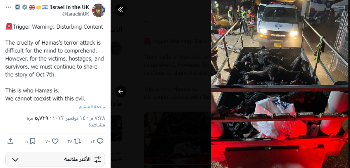 الصورة لجثث متفحمة قديمة وليست من هجوم حزب الله على إسرائيل