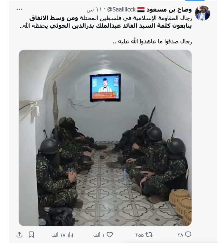صورة معدلة وليست لإستماع عناصر من المقاومة الفلسطينية لكلمة الحوثي