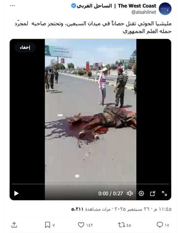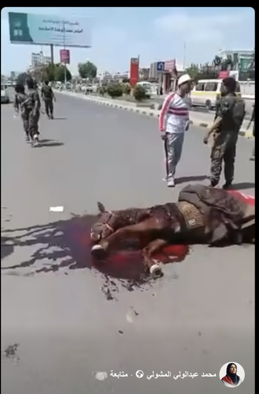 هل قتلت جماعة الحوثيين حصانا في العاصمة صنعاء كان يحمل العلم اليمني