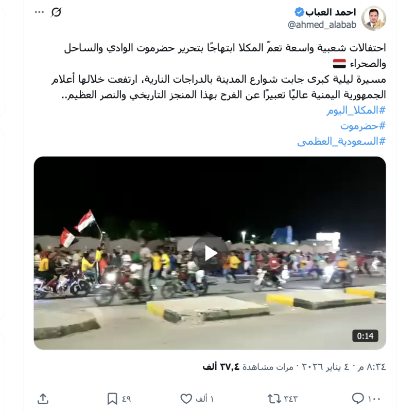 فيديو قديم وليس للاحتفال بتحرير حضرموت