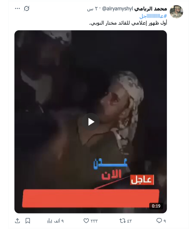 نشرت حسابات وصفحات على منصات التواصل مقطع فيديو مدعية أنه لظهور القائد في القوات التابعة للانتقالي الجنوبي فجر اليوم