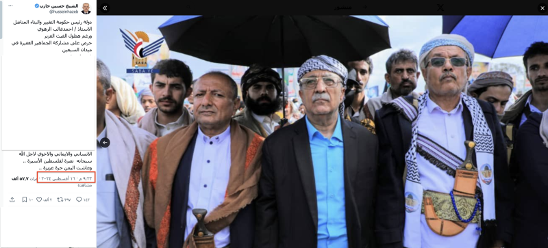 نشرت حسابات وصفحات على منصتي فيسبوك وإكس صورتين زعمت أنهما تُظهران رئيس مجلس الوزراء لدى جماعة الحوثيين أحمد غالب الرهوي في ميدان السبعين بصنعاء.