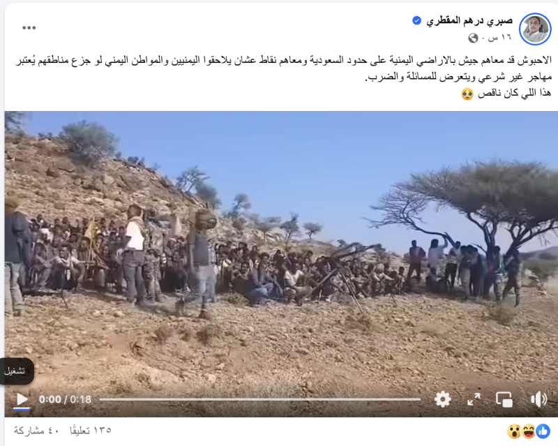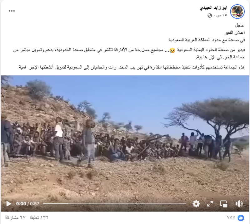نشرت حسابات وصفحات على منصة التواصل الاجتماعي فيس بوك فيديو مدعية أنه يظهر مجاميع أفريقية مسلحة في محافظة صعدة على الحدود اليمنية السعودية.