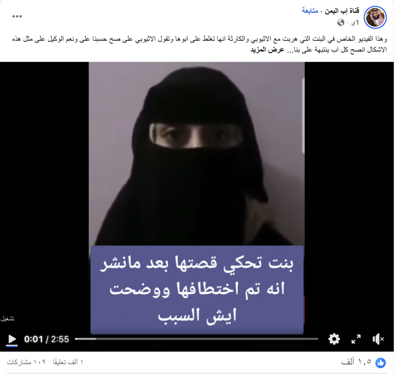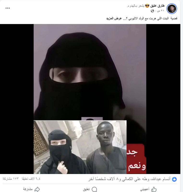نشرت حسابات وصفحات على منصات التواصل الاجتماعي وعلى نطاق واسع فيديو لفتاة مدعين أنها هربت وتزوجت من شاب إثيوبي رفضه والدها