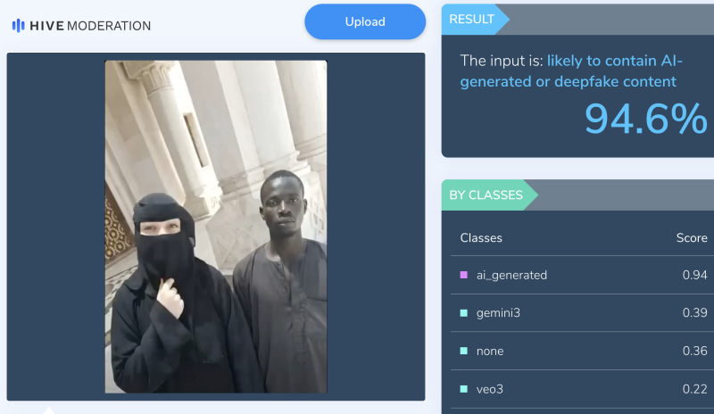 أظهرت عملية التحقق من الصورة التي إنتشرت للفتاة بجور شاب أسمر اللون أنها مفبركة ومعدلة بالذكاء الاصطناعي
