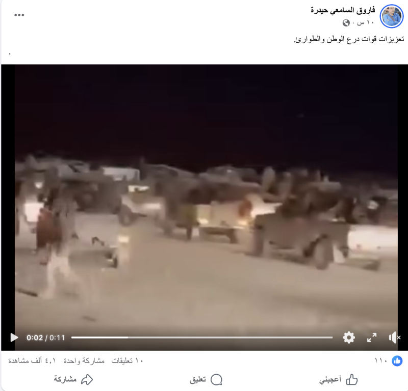 نشرت حسابات وصفحات على منصات التواصل مقطع فيديو مدعياً بأنه تعزيزات قوات درع الوطن و الطوارئ الى عدن.