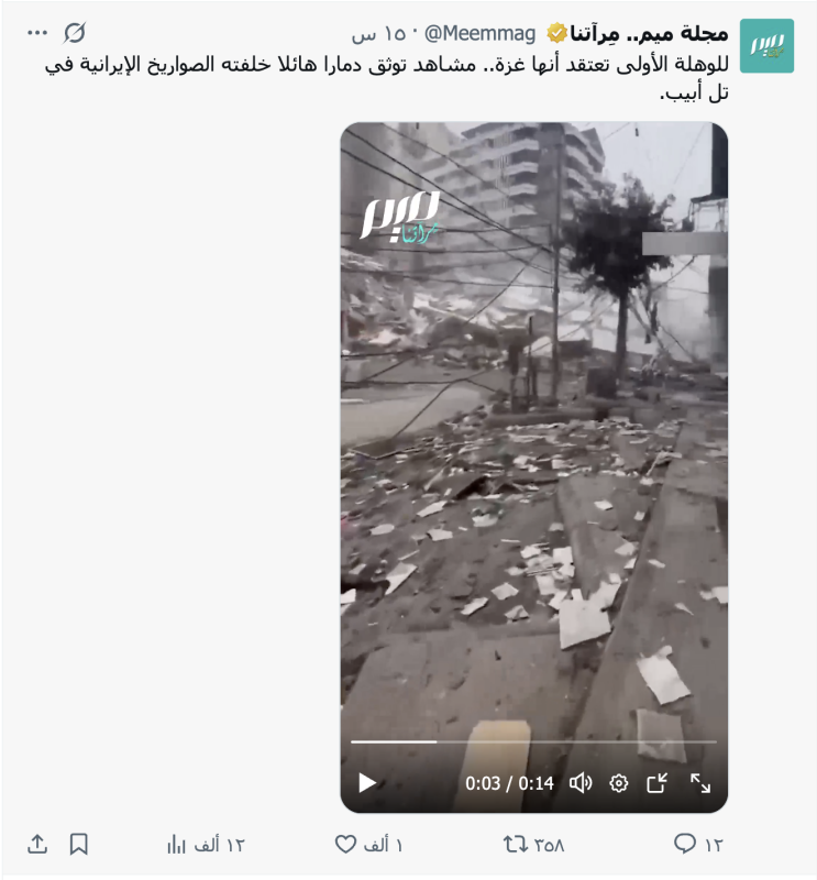 نشرت حسابات وصفحات على منصات التواصل الاجتماعي مقطع فيديو مدعية أنه يوثق دمارا هائلا خلفته الصواريخ الإيرانية في تل أبيب